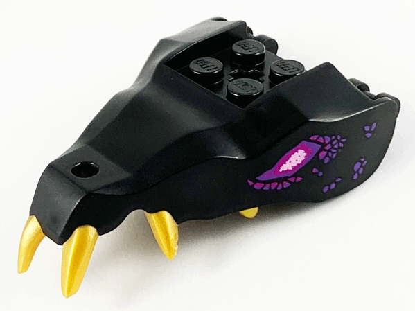 Dragon Head (Ninjago) Jaw with 2 Bar Handles on Back with Molded Gold Teeth, Magenta and Dark Purple Eyes and Scales Pattern