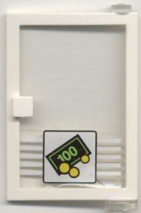 Door 1 x 4 x 5 Right with Trans-Clear Glass and Bill & Coins Pattern (Sticker) - Set 1490