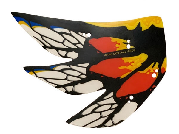 Plastic Part for Set 75574 - Wing Dragon Toruk Left Wingtip with Black Veins and Red, Bright Light Orange, Yellow, and Blue Trim Pattern