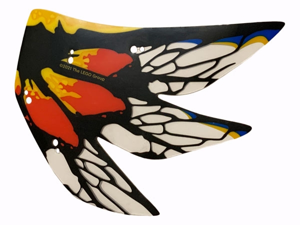 Plastic Part for Set 75574 - Wing Dragon Toruk Right Wingtip with Black Veins and Red, Bright Light Orange, Yellow, and Blue Trim Pattern