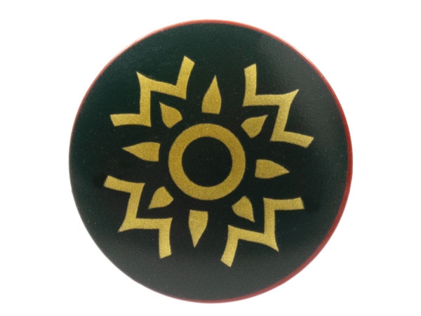 Minifigure, Shield Circular / Round Convex Face with Dark Green and Gold Rohan Pattern