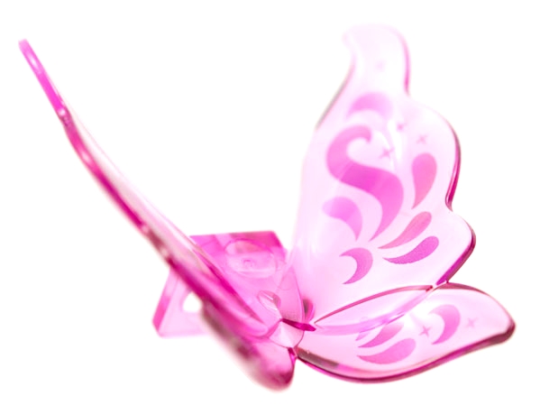 Minifigure Wings Insect Butterfly Pointed with Neck Bracket with Lavender and Metallic Pink Swirls, Silver Stars Pattern