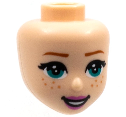 Mini Doll, Head Friends with Dark Orange Eyebrows and Freckles, Dark Turquoise Eyes, Black Mouth with Dark Pink Lips and Wide Open Mouth Smile with Teeth Pattern