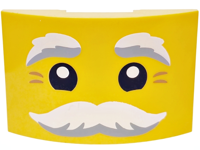 Slope, Curved 6 x 4 Double with Black Eyes, White and Light Bluish Gray Bushy Eyebrows and Moustache, Medium Nougat Crow's Feet Pattern (Santa Face)