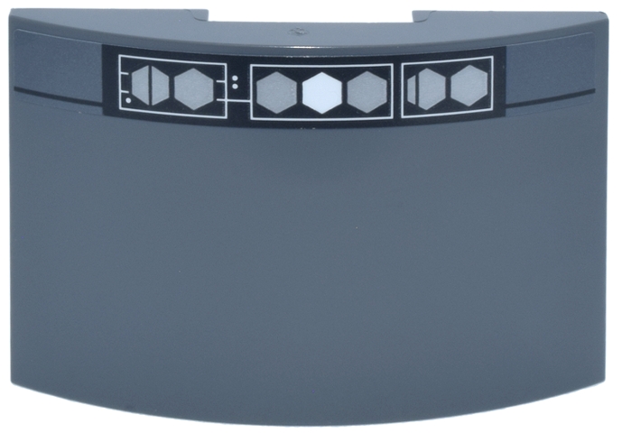 Slope, Curved 6 x 4 Double with Black Elevator Indicator Panel, Silver Hexagons, White Hexagon in Center Pattern (Sticker) - Set 75419