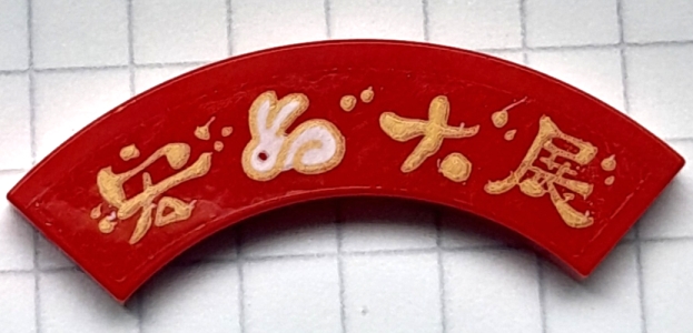 Tile, Round Corner 3 x 3 Macaroni with Gold and White Rabbit and Chinese Logogram '宏大展' (Grand Exhibition) Pattern (Sticker) - Set 80111