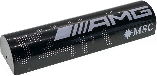 Slope, Curved 1 x 4 x 2/3 Double with White 'AMG' and 'MSC' Logos and Silver Dots Pattern Model Left Side