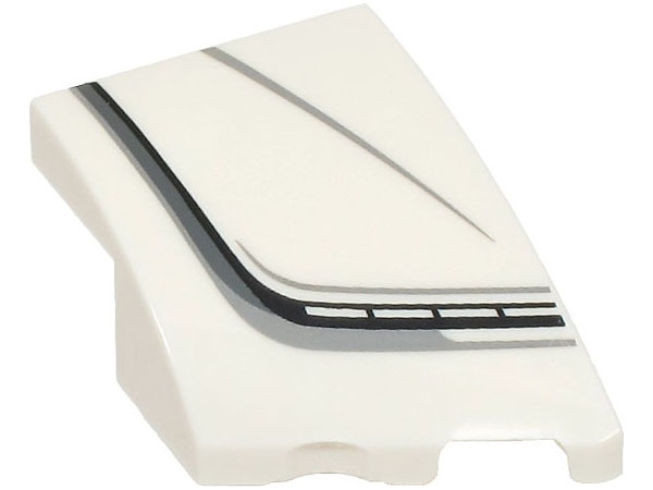 Wedge 3 x 2 Right No Studs with Black, Dark Bluish Gray and Light Bluish Gray Stripes and Bugatti Centodieci Car Headlight Pattern