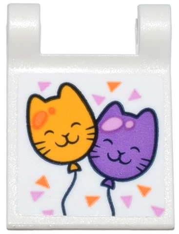 Flag 2 x 2 Square with Flared Edge with Bright Light Orange and Medium Lavender Cat Balloons and Triangle Confetti Pattern (Sticker) - Set 42666