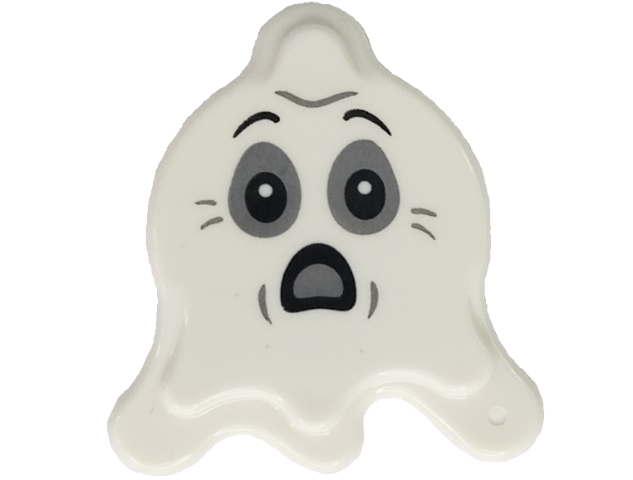Tile, Round 2 x 2 Splat with Side Extensions with Ghost Face with Dark Bluish Gray and Light Bluish Gray Eyes and Scared Open Mouth Pattern (BAM)