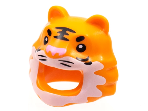Minifigure, Headgear Head Cover, Costume Tiger with Black Stripes, White Muzzle Pattern