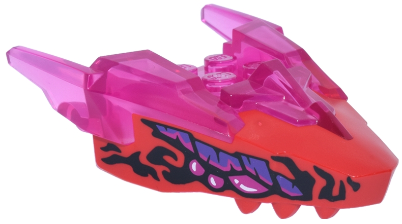 Dragon Head (Ninjago) Jaw Upper with Horns with Molded Red Face and Printed Black Markings, Dark Purple Rock Eyebrows, Magenta Eyes Pattern