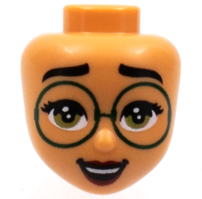 Mini Doll, Head Friends with Black Eyebrows, Large Dark Green Glasses, Olive Green Eyes, Dark Red Lips Pattern