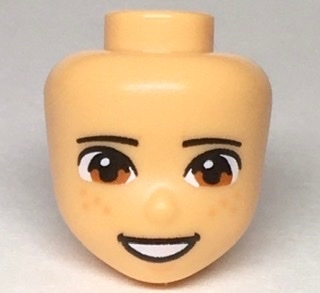 Mini Doll, Head Friends with Black Eyebrows, Dark Orange Eyes, Freckles and Open Mouth Smile with Teeth Pattern