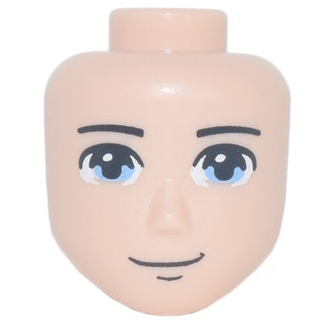 Mini Doll, Head Friends Male Large with Black Thin Eyebrows, Bright Light Blue Eyes, Chin Dimple, Grin Pattern