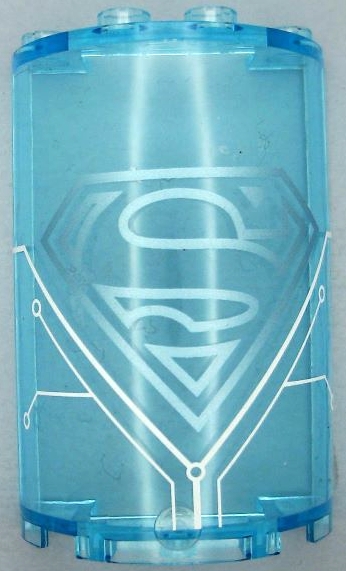 Cylinder Half 2 x 4 x 5 with 1 x 2 Cutout with Metallic Light Blue Superman Logo and White Circuitry Pattern (Sticker) - Set 41239