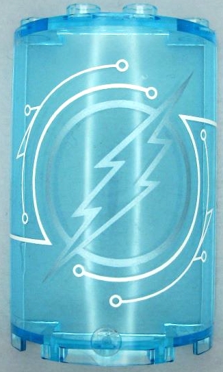 Cylinder Half 2 x 4 x 5 with 1 x 2 Cutout with Metallic Light Blue The Flash Logo and White Circuitry Pattern (Sticker) - Set 41239