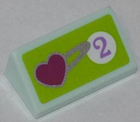 Slope 30 1 x 2 x 2/3 with Heart and Purple Number 2 in White Circle on Lime Background Pattern (Sticker) - Set 41007