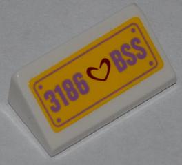 Slope 30 1 x 2 x 2/3 with Dark Red Heart and '3186 BSS' Pattern (Sticker) - Set 3186