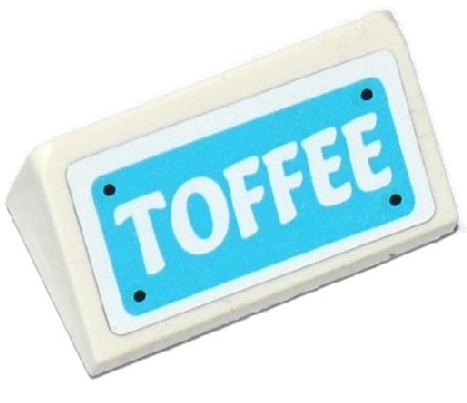 Slope 30 1 x 2 x 2/3 with White 'TOFFEE' on Medium Azure Background Pattern (Sticker) - Set 41124
