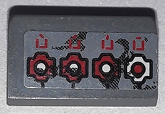 Slope 30 1 x 2 x 2/3 with White and Dark Red Nuts on Dark Gray Background Pattern (Sticker) - Set 70009