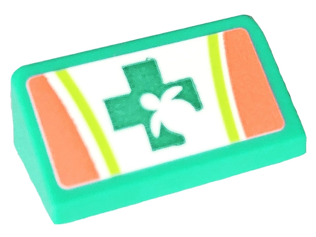 Slope 30 1 x 2 x 2/3 with Lime and Coral Stripes and Turtle in Cross Pattern (Sticker) - Set 41697