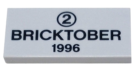 Tile 2 x 4 with Black Number 2 in Circle and 'BRICKTOBER 1996' Pattern