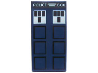 Tile 2 x 4 with Black Squares and White 'POLICE BOX' and Windows Pattern (Doctor Who TARDIS Side)