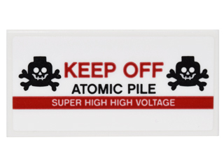 Tile 2 x 4 with Black Skulls and Crossbones, Red 'KEEP OFF', Black 'ATOMIC PILE' and White 'SUPER HIGH HIGH VOLTAGE' Pattern (Sticker) - Set 76052