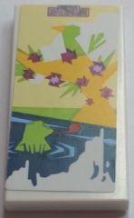 Tile 2 x 4 with Frog in Pond and Bird in Tree on Canvas Painting Pattern (Sticker) - Set 41095