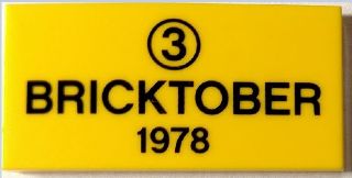 Tile 2 x 4 with Black Number 3 in Circle and 'BRICKTOBER 1978' Pattern