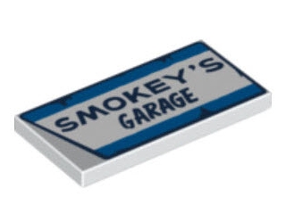 Tile 2 x 4 with Dark Blue 'SMOKEY'S GARAGE' Pattern
