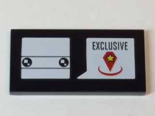 Tile 2 x 4 with White BrickHeadz Head and Word Balloon with 'EXCLUSIVE' and Yellow Star on Red Jewel Pattern