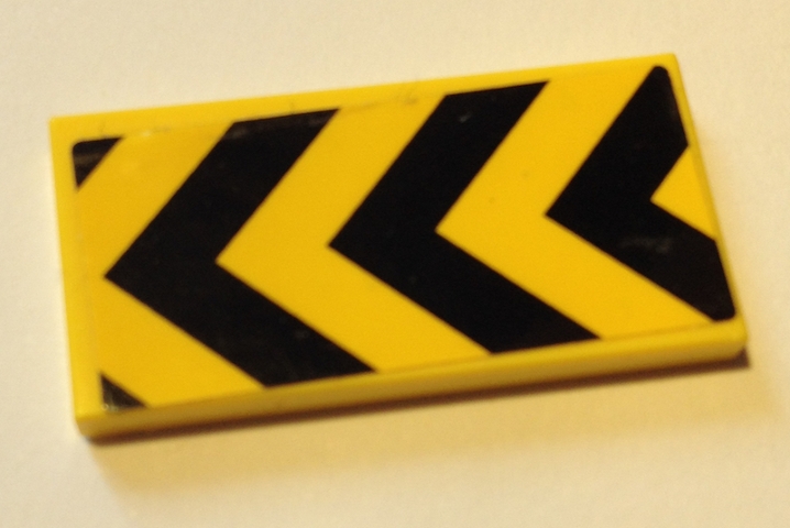 Tile 2 x 4 with Thick Black and Yellow Chevron Danger Stripes Pattern (Sticker) - Set 60125