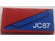 Tile 2 x 4 with Blue Wing Panel and 'JC87' on Red Background Pattern Model Left Side (Sticker) - Set 76076