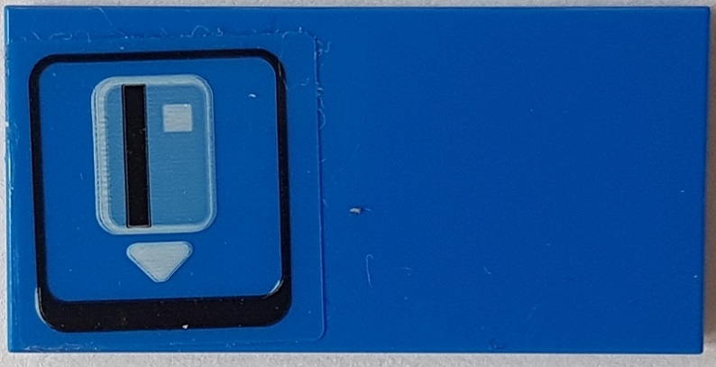 Tile 2 x 4 with Medium Blue Debit / Credit Card and White Triangle inside Black Rounded Square Pattern (Sticker) - Set 76082