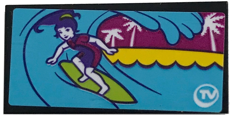 Tile 2 x 4 with Girl Surfing and 'TV' Pattern (Sticker) - Set 41317