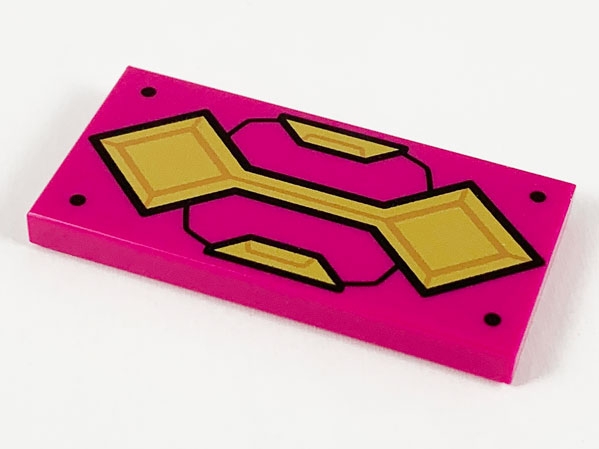 Tile 2 x 4 with Gold Armor Plates and 4 Black Rivets Pattern