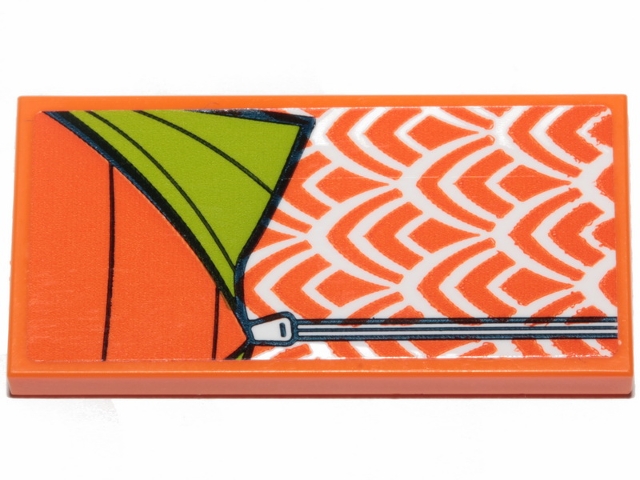 Tile 2 x 4 with Orange and Lime Sleeping Bag Pattern (Sticker) - Set 41424