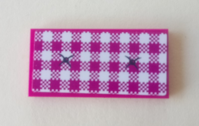 Tile 2 x 4 with Cushion with 2 Buttons, Magenta and White Checkered Pattern (Sticker) - Set 41314