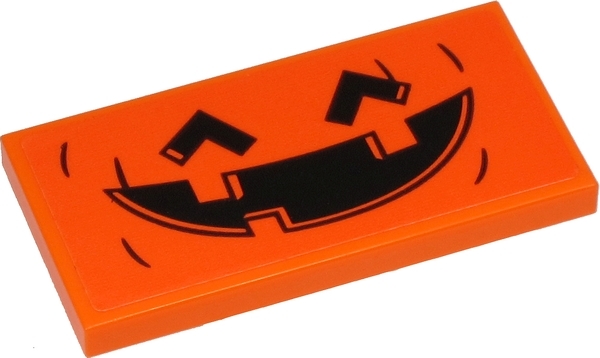 Tile 2 x 4 with Orange and Black Pumpkin Jack O' Lantern Pattern (Sticker) - Set 40423