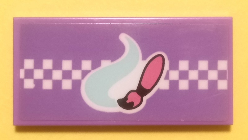 Tile 2 x 4 with Bright Pink Paint Brush, Light Aqua Paint Swirl and White Checkered Background Pattern (Sticker) - Set 41351