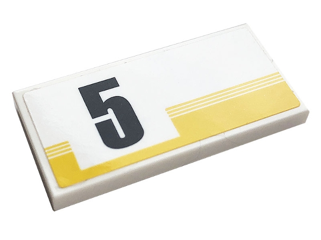 Tile 2 x 4 with Yellow Stripes and Black Number 5 Pattern Model Left Side (Sticker) - Set 76897