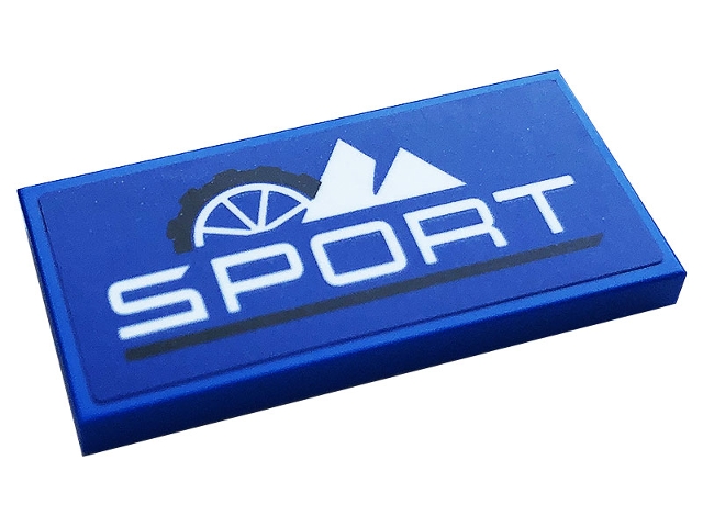 Tile 2 x 4 with Black Stripe and White 'SPORT', Wheel and Mountains Pattern (Sticker) - Set 60306