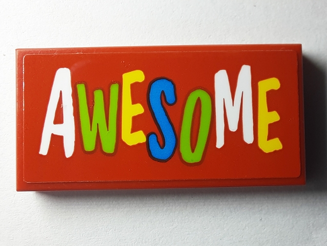 Tile 2 x 4 with Dark Azure, Lime, White and Yellow 'AWESOME' Pattern (Sticker) - Set 40385