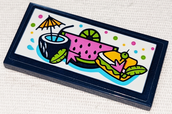 Tile 2 x 4 with Cocktail, Watermelon and Sandwich Pattern (Sticker) - Set 41347