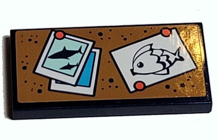 Tile 2 x 4 with Shark Photo and Fish Drawing on Bulletin Board Pattern (Sticker) - Set 41380