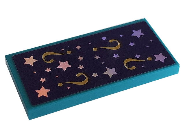 Tile 2 x 4 with Silver Stars and Gold Question marks Pattern (Sticker) - Set 41687