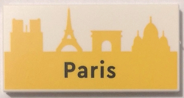 Tile 2 x 4 with Black 'Paris' on Yellow Landmark Skyline Pattern