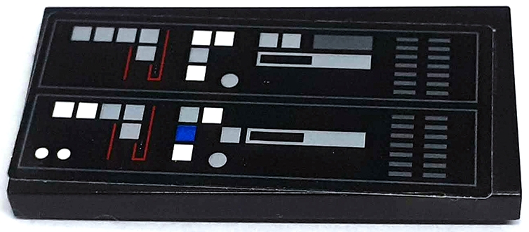 Tile 2 x 4 with SW Inquisitor Transport Scythe Control Panel with Light Bluish Gray, White and Blue Dots and Squares Pattern (Sticker) - Set 75336